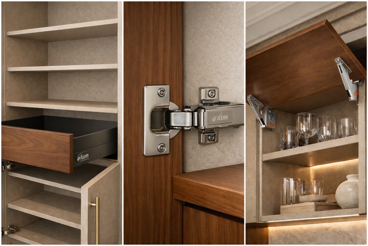 Отдельного внимания заслуживает фурнитура. Именно она отвечает за плавное закрывание дверей, лёгкий ход ящиков и сохранение геометрии мебели со временем. Качественная фурнитура — это не излишество, а комфорт, который ощущается каждый день.