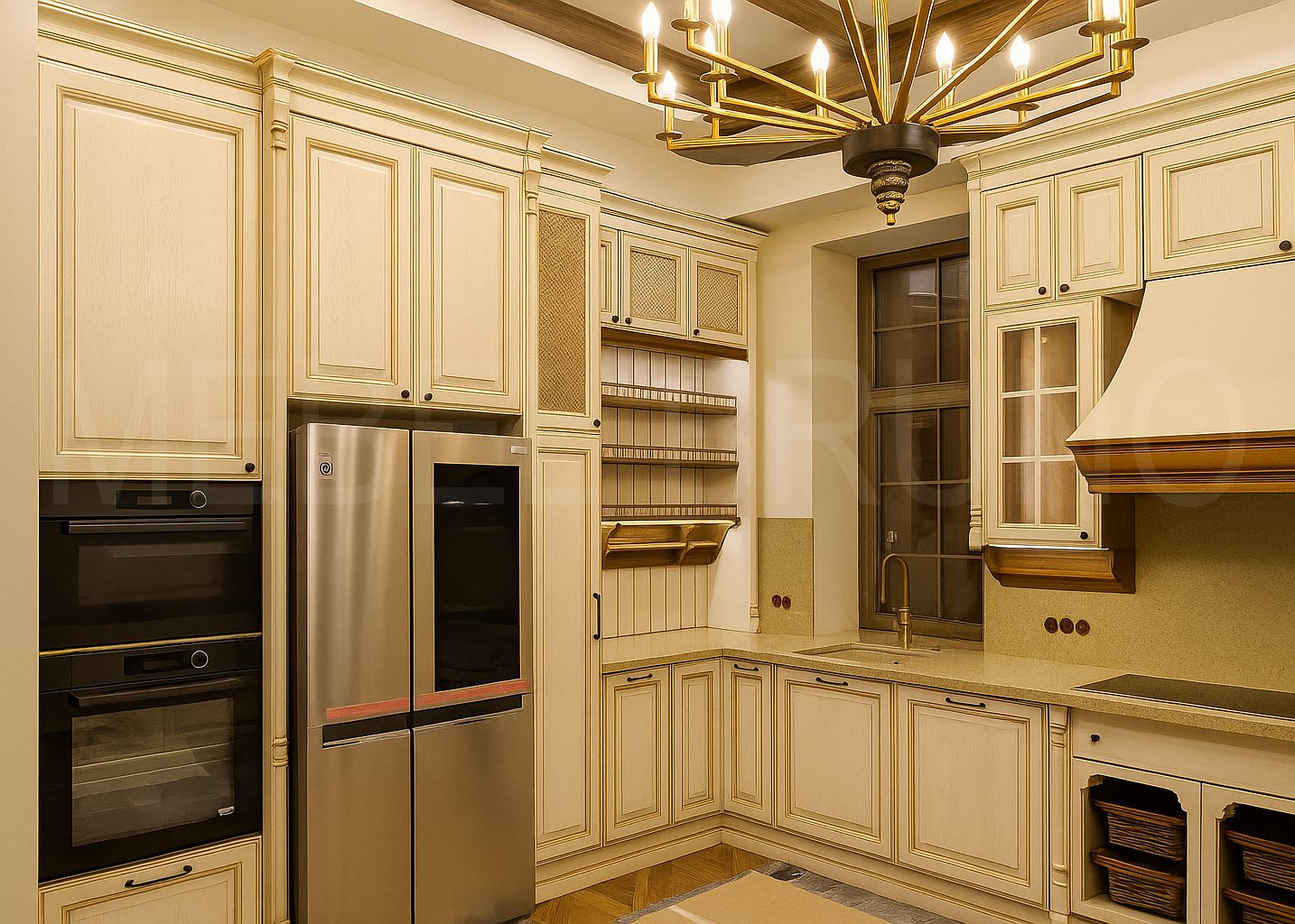 Эта кухня — пример классики, которая всегда выглядит “дорого” и актуально. Светлые фасады с аккуратным декором делают пространство светлее, а витринные секции добавляют интерьеру глубины и статуса. Мы продумали эргономику под ежедневные сценарии: удобная угловая зона, продуманное хранение, интеграция техники и аккуратная подгонка всех узлов. Проект выполнен по индивидуальным размерам — так, чтобы кухня работала идеально и радовала каждый день.