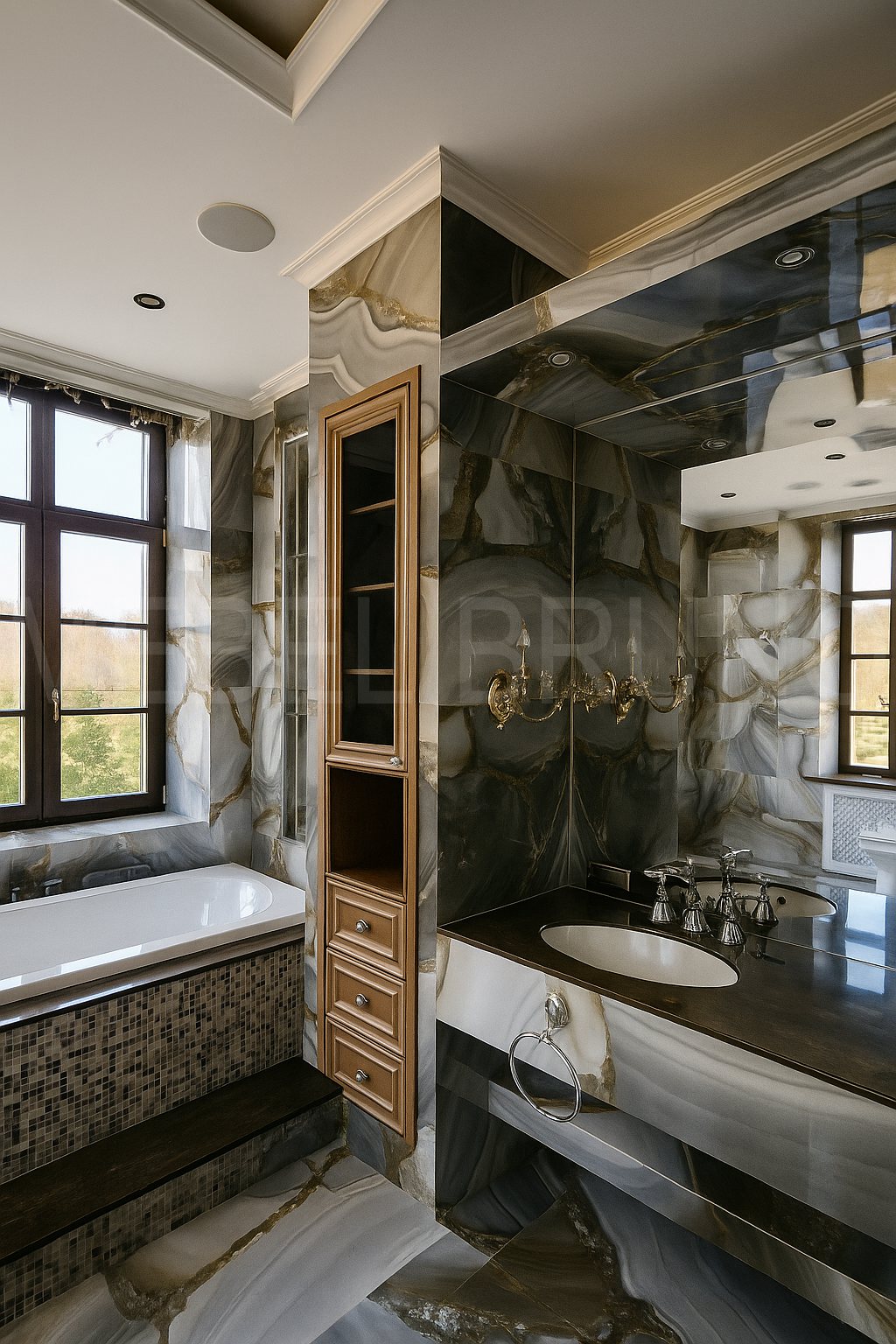 Мы рады представить вам нашу новую работу - большой дом с уникальной атмосферой уюта и роскоши. Вся мебель здесь изготовлена из натурального дерева и шпона, что придает интерьеру особый шарм и изысканность. Мы тщательно следовали дизайн-проекту, чтобы создать идеальное сочетание комфо...