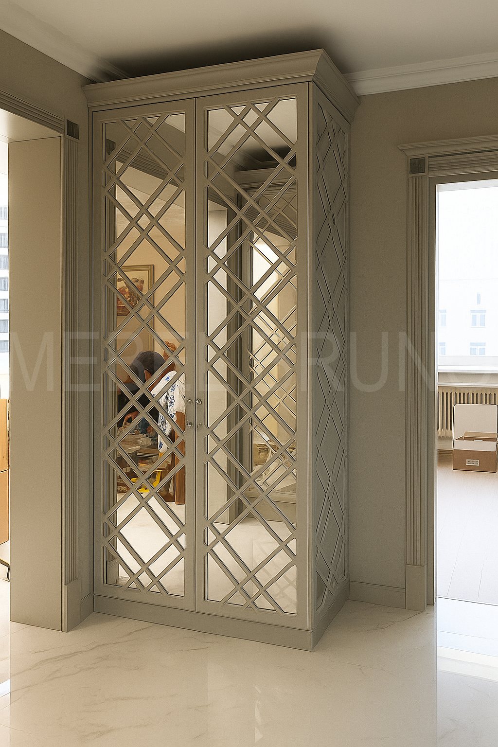 Шкаф с разделами для самого значимого - косметики и парфюмерии. Заказ был выполнен в стиле барокко, что придает ему особую изюминку. Выделяющаяся золотая арка и нежный оттенок эмали создают неповторимый образ. Мебель выполнена из МДФ и массив дерева ...