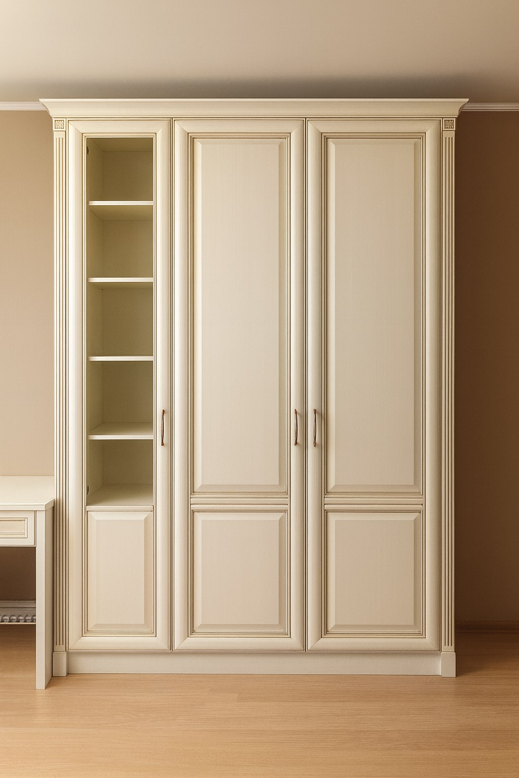 Стиль: классический — мягкие линии, декоративные пилястры, молдинги, светлая палитра.