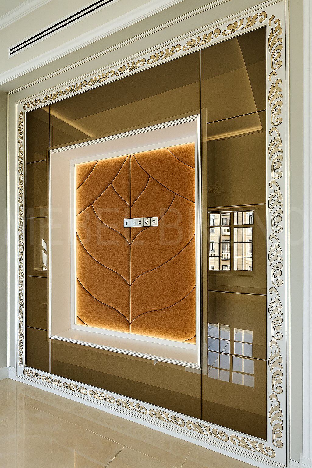 Этот проект — настоящий “вау-акцент” для интерьера. Зеркальные панели визуально расширяют пространство, мягкая 3D-вставка добавляет объём и тактильность, а встроенная подсветка создаёт тёплый вечерний свет без лишних светильников. Резной багет с золотыми акцентами завершает композицию и делает её по-настоящему премиальной. Выполнили панель по индивидуальным размерам и смонтировали так, чтобы она выглядела как часть архитектуры помещения.
