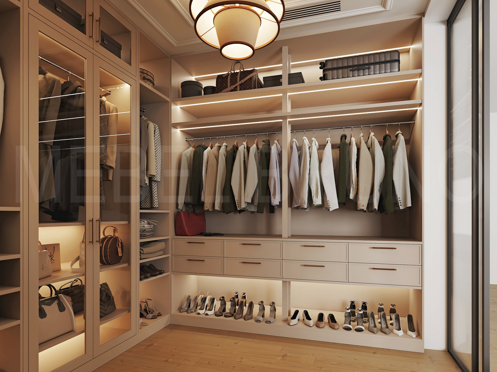 Назначение: Организация хранения одежды, обуви и аксессуаров в гардеробной комнате; подходит для жилых помещений с выделенной зоной хранения.
