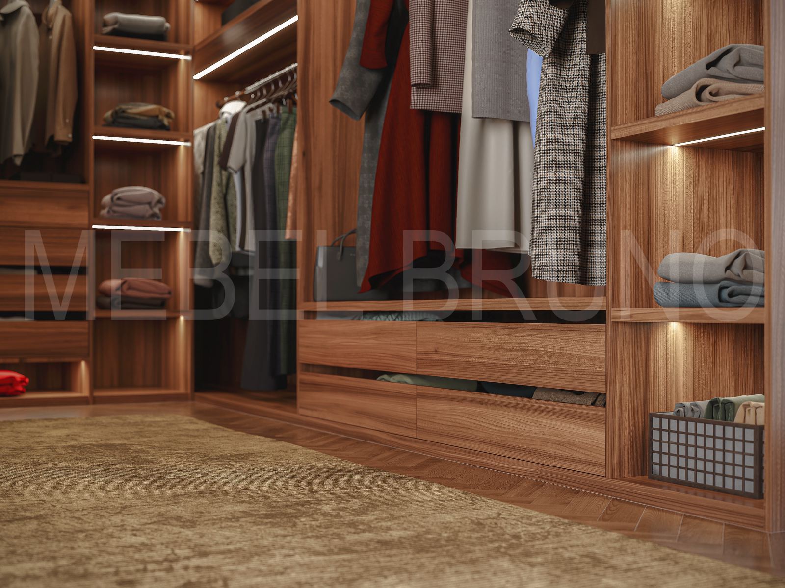 Дополнительно: Предусмотрена возможность изготовления мебели для гардеробной по индивидуальным размерам, стандартные размеры могут быть изменены по желанию клиента на любые другие, материалы отделки так же могут варьироваться.