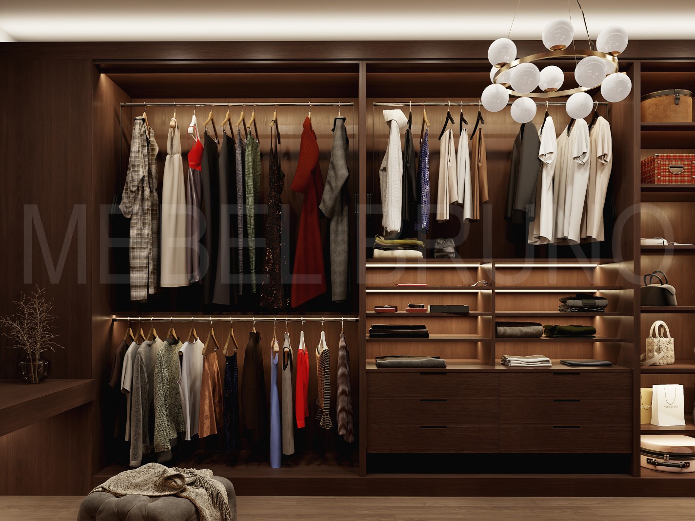 Дополнительно: Предусмотрена возможность изготовления мебели для гардеробной по индивидуальным размерам, стандартные размеры могут быть изменены по желанию клиента на любые другие, материалы отделки так же могут варьироваться.