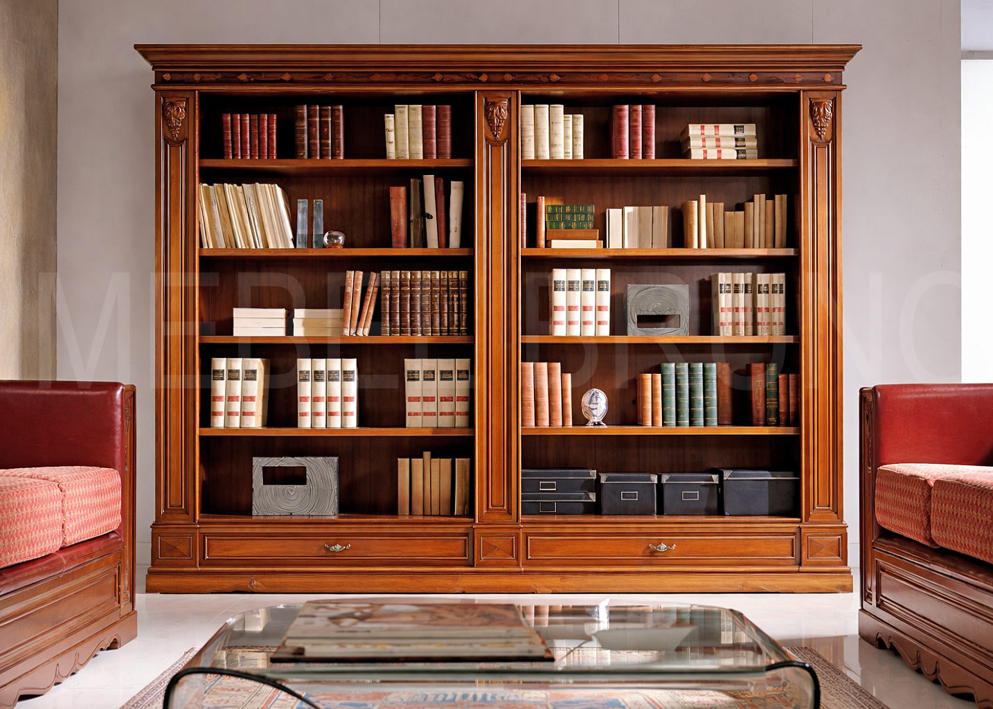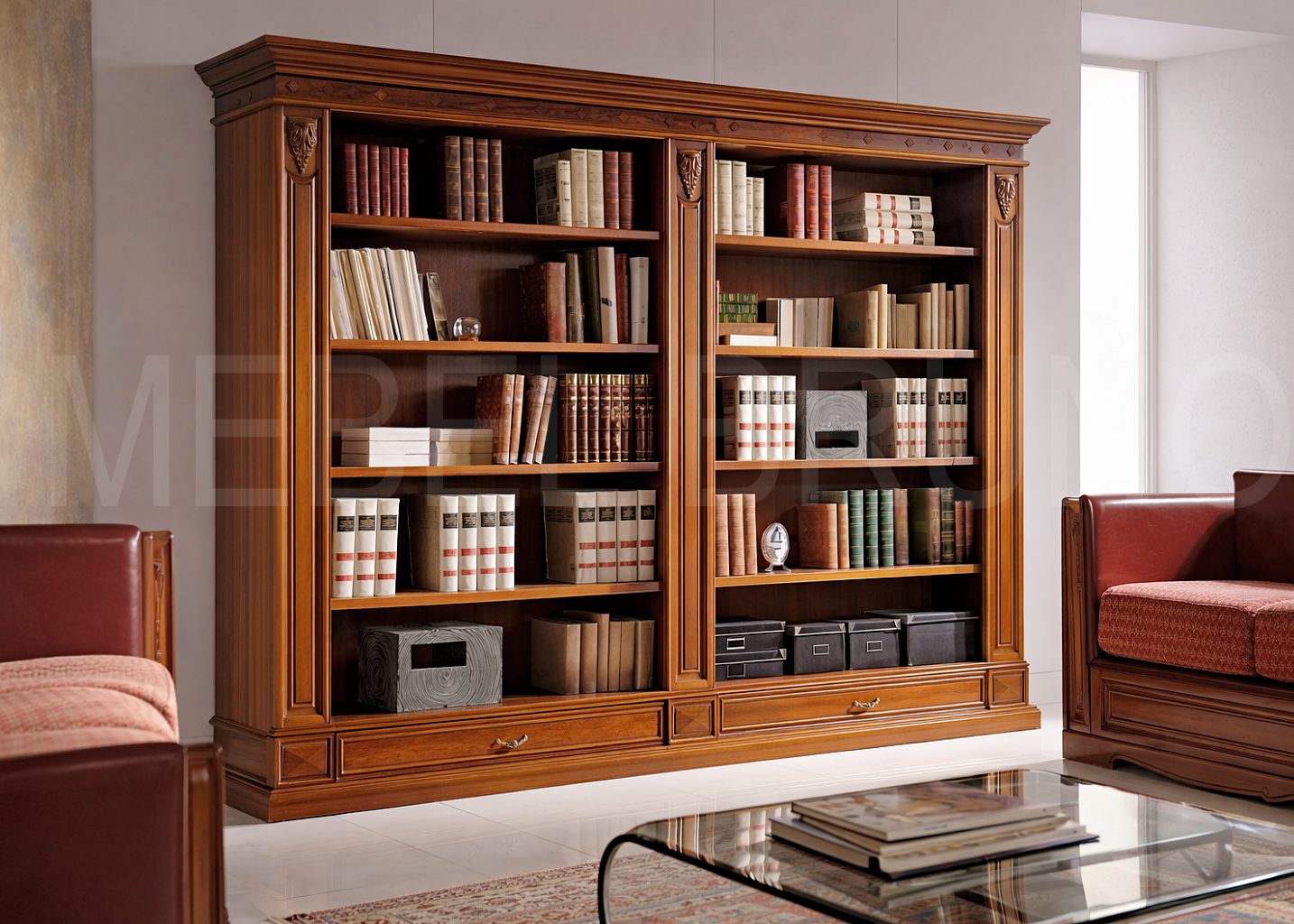 Дополнительно: Предусмотрена возможность изготовления шкафа для книг по индивидуальным размерам, стандартные размеры могут быть изменены по желанию клиента на любые другие, материалы отделки так же могут варьироваться.
