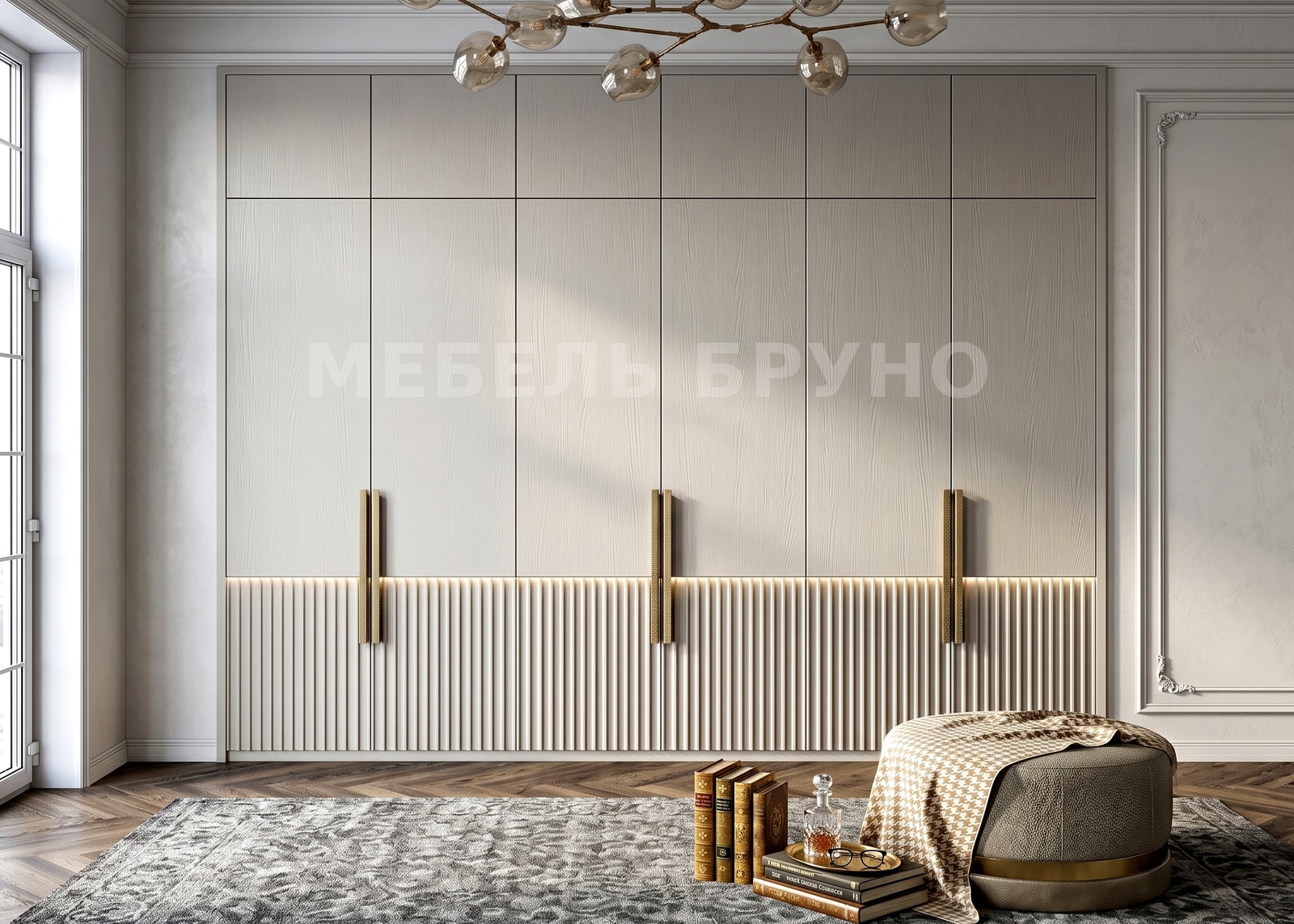 Подробное описание: Прямая корпусная прихожая с секциями для одежды и обуви. Фасады из МДФ с эмалью, белого цвета. Уместна в интерьерах, оформленных в стиле модерн. Фабрика Бруно изготавливает по индивидуальному размеру, цвет — по RAL или NCS.